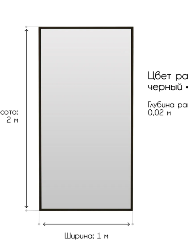Зеркало «Parallax». Артикул GMZ-8-2-1/2/3 Большое зеркало в полный рост, которое с уверенностью можно назвать парадным. Простая прямоугольная форма без каких-либо излишеств позволяет использовать это зеркало в любых помещениях, оформленных в каких угодно стилях. Оно способно кардинально преображать пространство визуально расширяя его рамки и наполняя светом. Рама изготовлена из прочного металла, придаёт конструкции устойчивость и надёжность. Зеркальное полотно высокого качества, является продукцией известного бельгийского бренда AGC. Зеркало можно использовать как в напольном, так и настенном вариантах. Для крепежа на стену на обратной стороне рамы имеются крепёжные элементы.Характеристики:– габаритные размеры – 2000х1000х20 мм, металлический профиль – квадрат 20х20 мм;